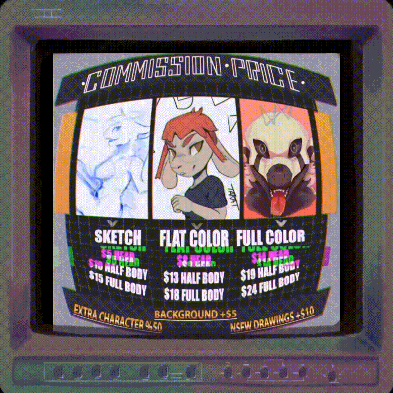 3. _ Fetiches tabúSi deseas agregar algún elemento en tu comisión y no sabes si tiene un precio extra, diferente o esta prohíbo. Puedes consultarme en mis mensajes directos.REEMBOLSOEl reembolso de una comisión es solo posible cuando aún no se ha realizado ningún trabajo.PAGO Y PROCESOS DE LA COMISIONPago se realiza a través de PayPal.El pago se realiza primero y posteriormente se inicia la comisión.Las fases de la comisión son las siguientes:1.- Boceto simple2.- Boceto detallado3.- Delineado4.- Colores planos5.- RenderizadoMáximo 5 revisiones durante el proceso de ilustración (los cambios extremos se cobrarán un extra).Las comisiones suelen completarse en un máximo de dos semanas (dependiendo de la comisión).